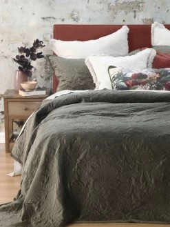 Soft and sophisticated, Constance is a quilted velvet and floral classic in a wonderfully deep olive-green hue.