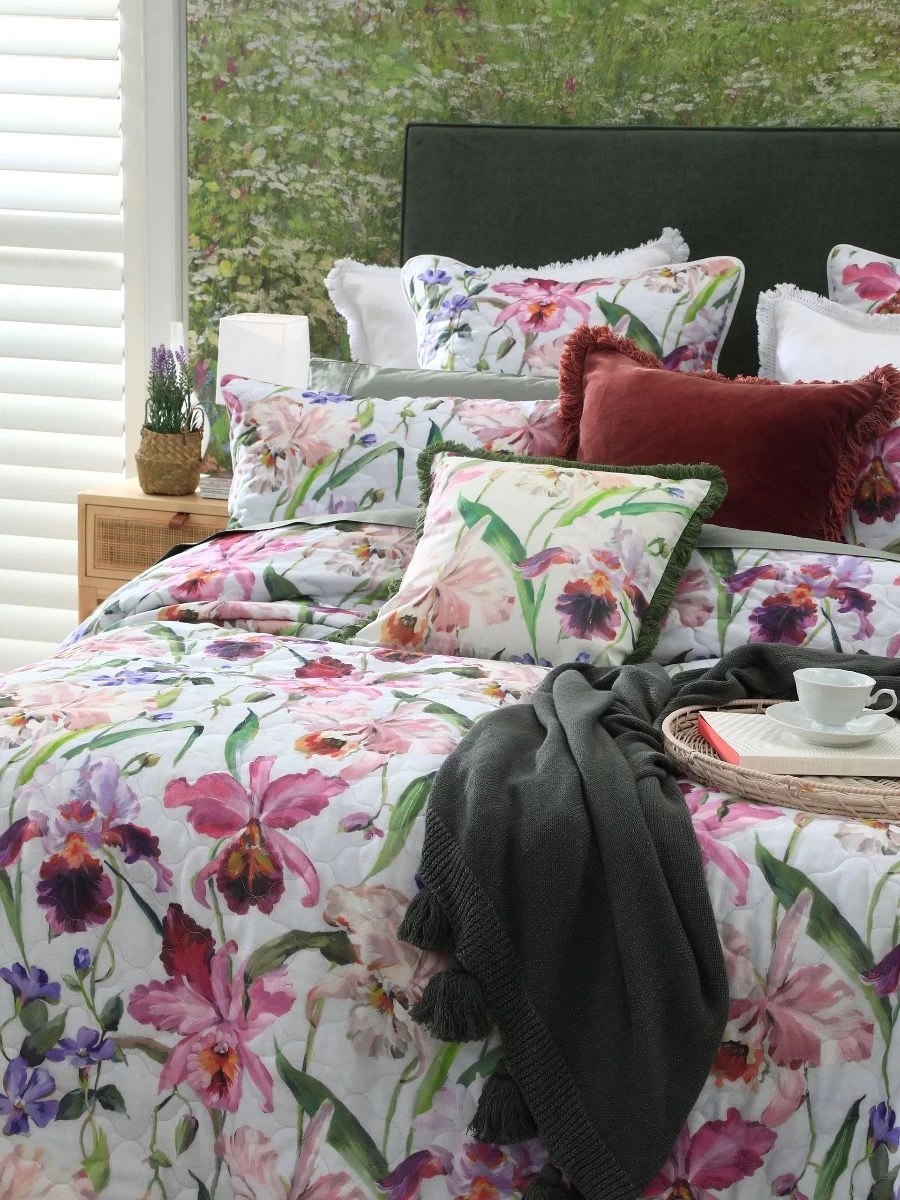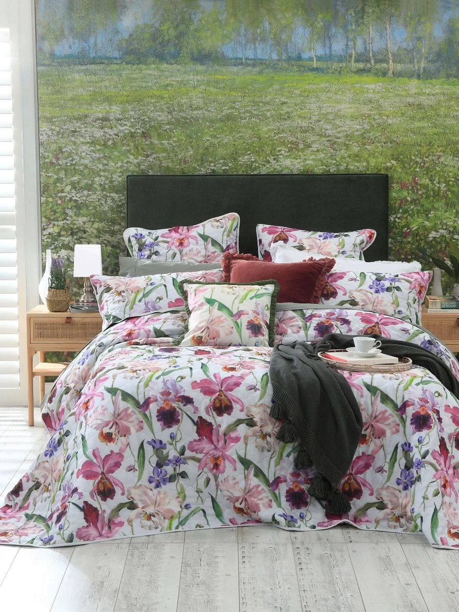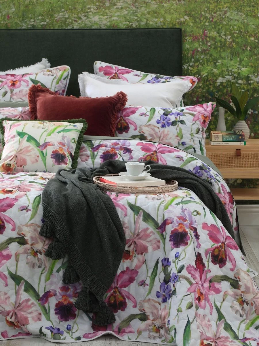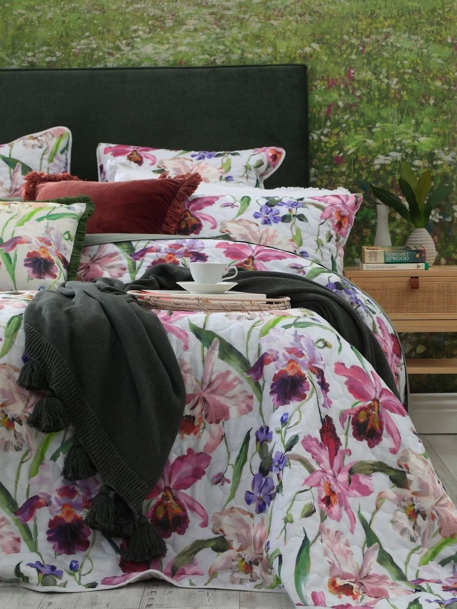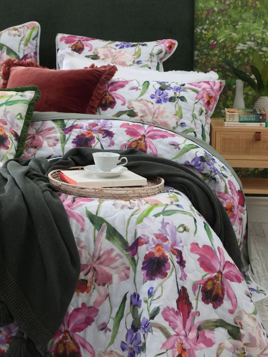 Made from a beautifully soft, quilted linen/cotton, this printed coverlet set reverses to a plain-dyed off-white and works wonderfully as a stand-alone cover or draped over your favourite bed linen for additional comfort and texture.
