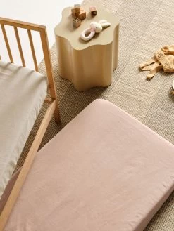 Designed for cots, this two-piece set includes one fitted sheet in pink salt and another in taupe – keeping you well-supplied for those little accidents.