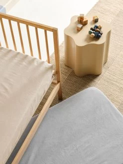 Designed for cots, this two-piece set includes one fitted sheet in slate and another in taupe – keeping you well-supplied for those little accidents.