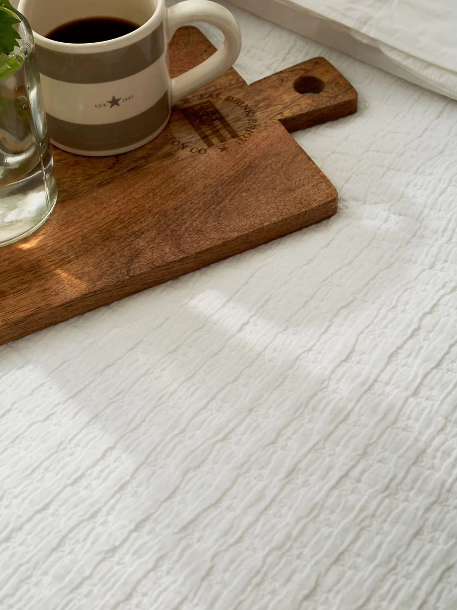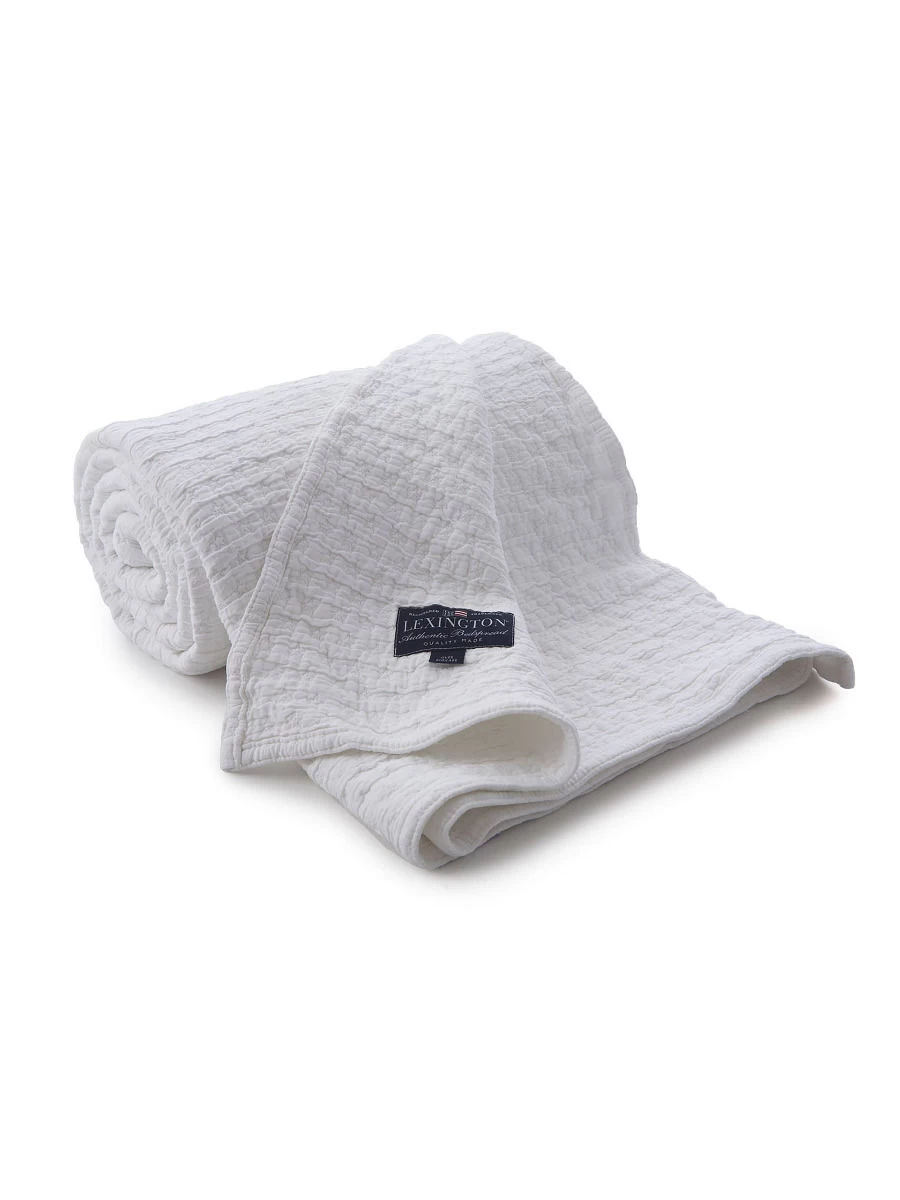 With a classic star design across a white ground with a self-piped edge for a classic yet contemporary finish, this blanket with a 550 GSM cotton filling looks magnificent styled with its coordinating coverlet, pillow shams and European pillowcases.