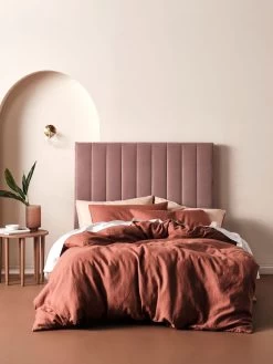 Add a beautifully soft, elegant style to your boudoir with Ari, a bedhead that comes in a stunningly upholstered rose fabric in padded, vertical lines for texture.