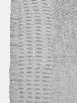 A super-silky bathroom essential, Aria in silver is made from a supreme blend of 550 GSM cotton/bamboo with chic fringing at either end.