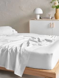 The flat sheet and pillowcases have a cuffed and piped header for a polished finish while the fitted sheet has a generous 50cm wall – perfect for all mattresses.
