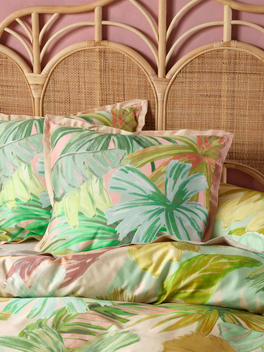 This cotton sateen European pillowcase with a tailored edge looks sublime paired with its matching bed linen as well as textured cushions for a detailed finish.