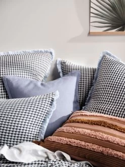 Finished with a contrasting cotton fringe in coral, this lightweight and equally cosy European pillowcase will effortlessly complement plain-dyed as well as printed bed linens and accessories.