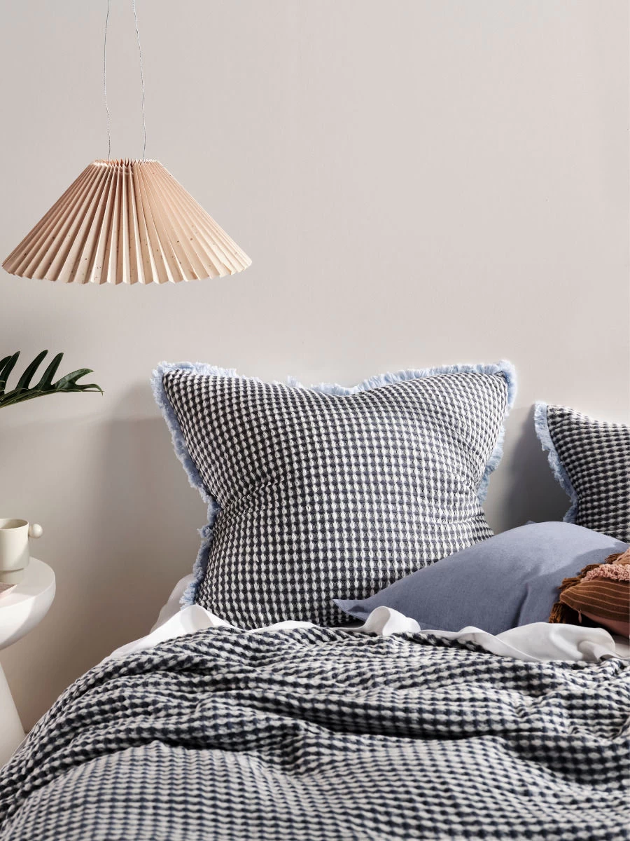 The humble waffle gets a stylish upgrade with Cavo – a duotone of teal and white in a textured, woven cotton.