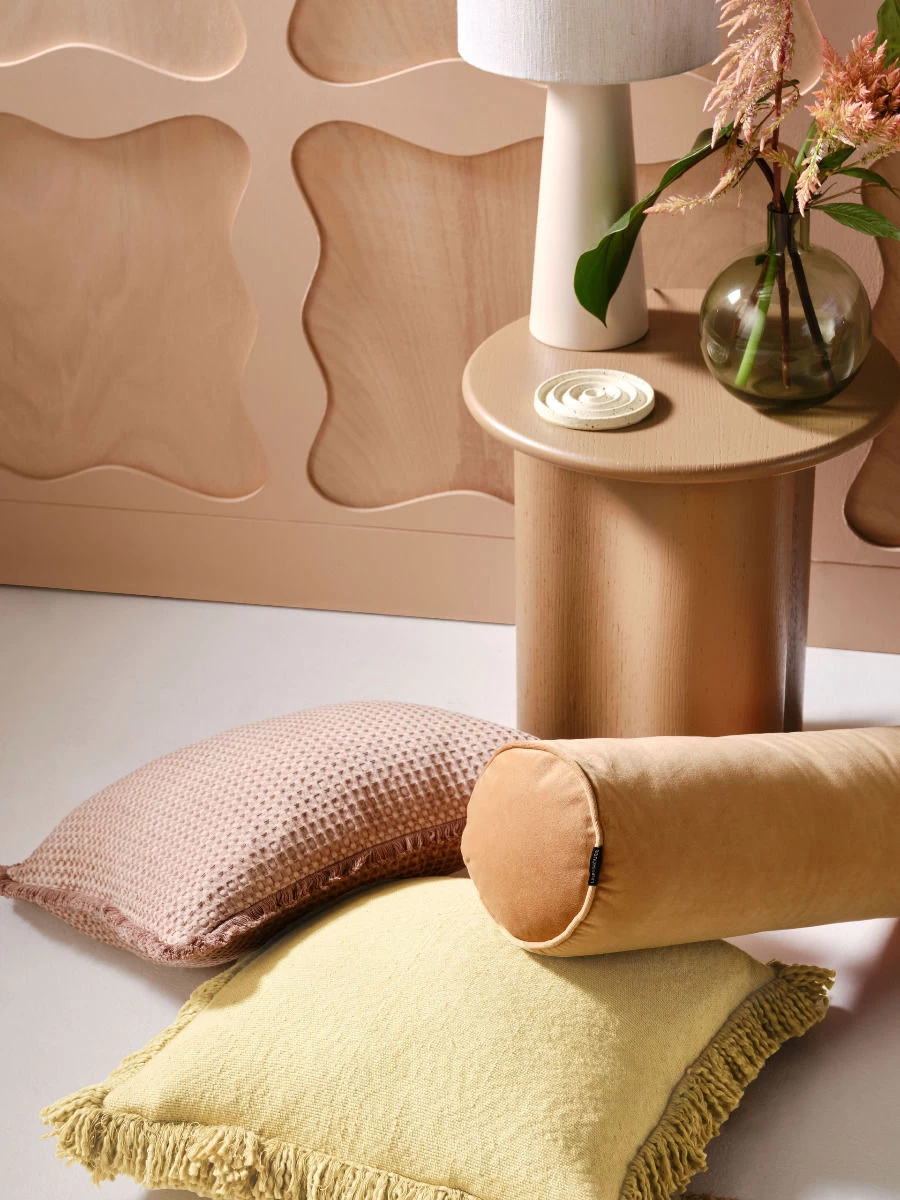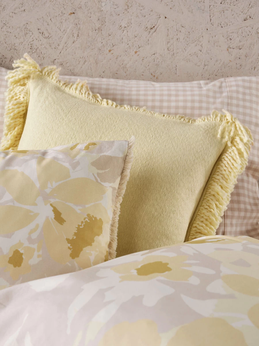 True to its name, this stylish cushion in yellow exudes a relaxed, lounge-around vibe.
