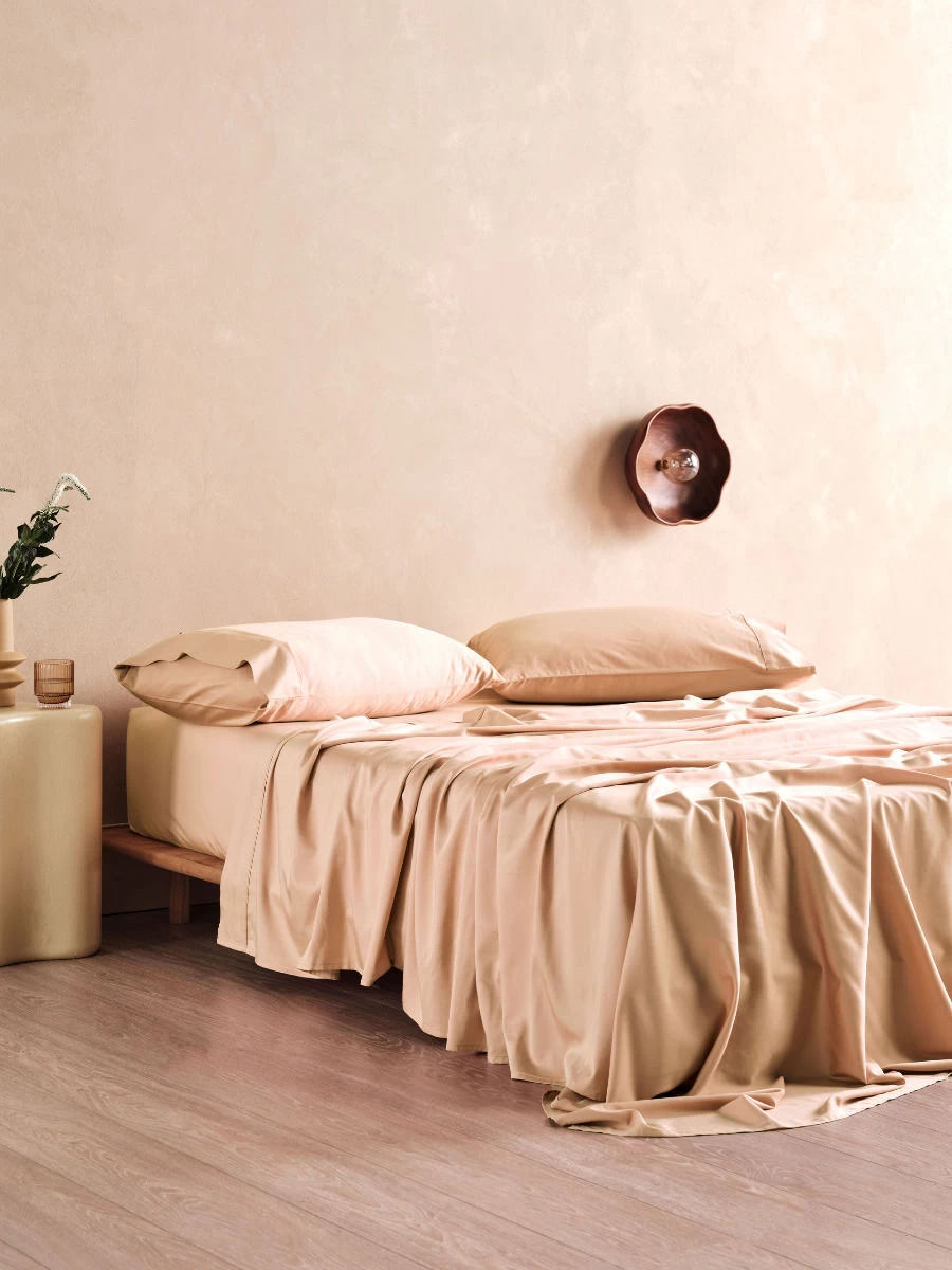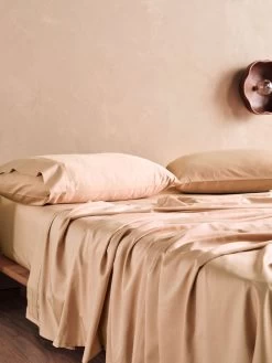 Favourable to allergy sufferers for its antimicrobial properties, this sheet set in pink nude promises a beautiful feel and drape, which launders beautifully and dries fast.