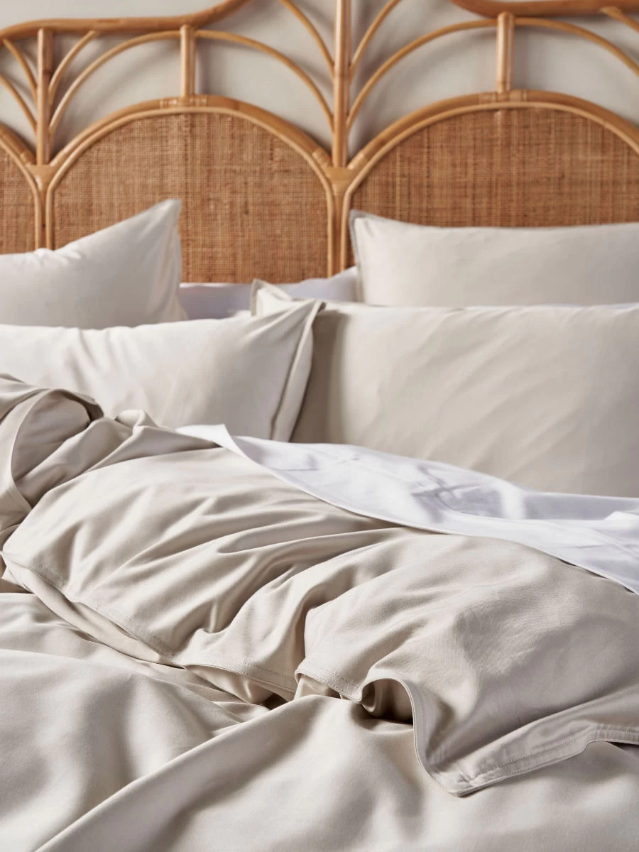 Favourable to allergy sufferers for its antimicrobial properties, this quilt cover set in sand promises a beautiful feel and drape, which launders beautifully and dries fast.