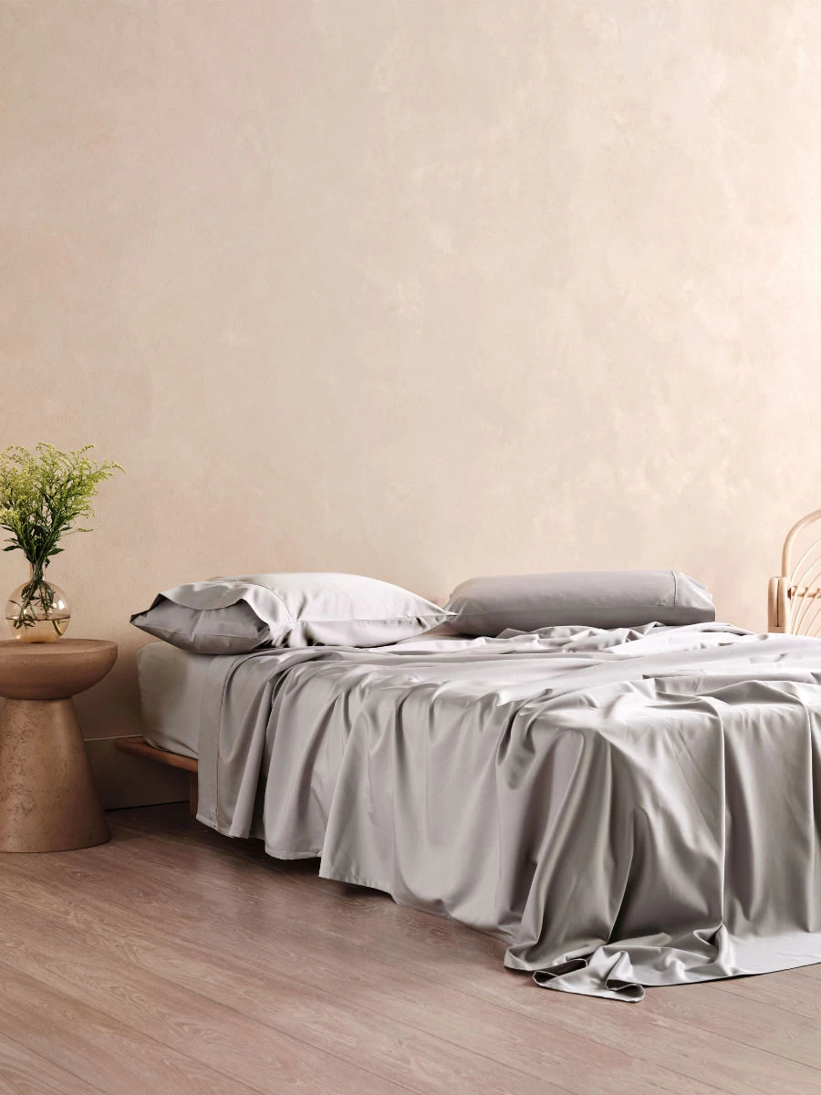 Favourable to allergy sufferers for its antimicrobial properties, this sheet set in silver promises a beautiful feel and drape, which launders beautifully and dries fast.