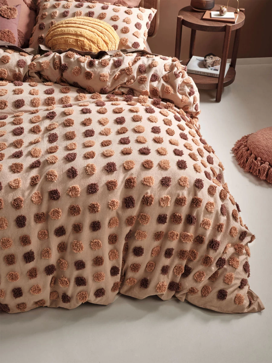 This entire set looks phenomenal paired with hues of ginger, epresso and nude as well as with its coordinating tufted European pillowcases and cushion – a wonderful aesthetic for adults and kids alike.