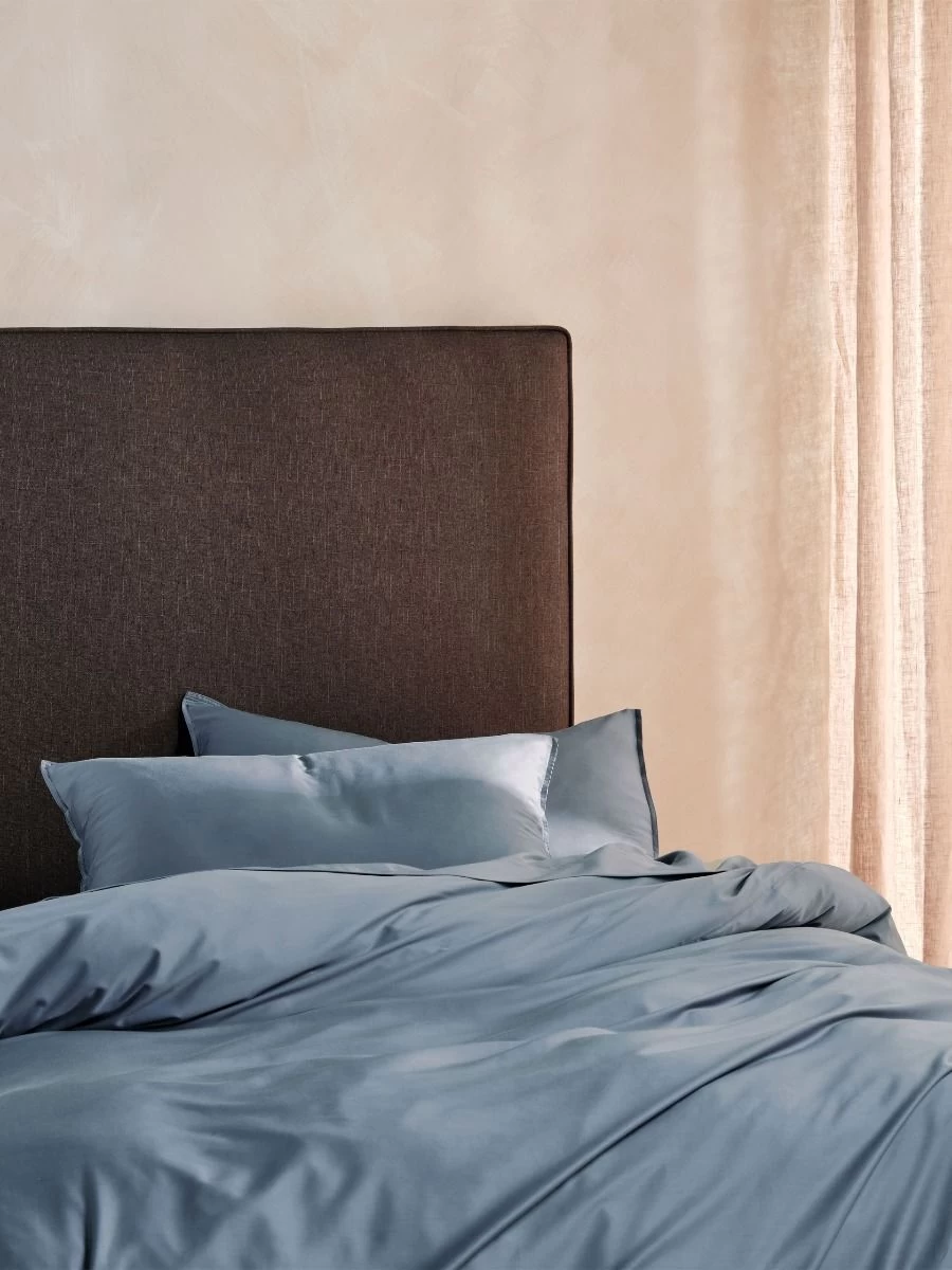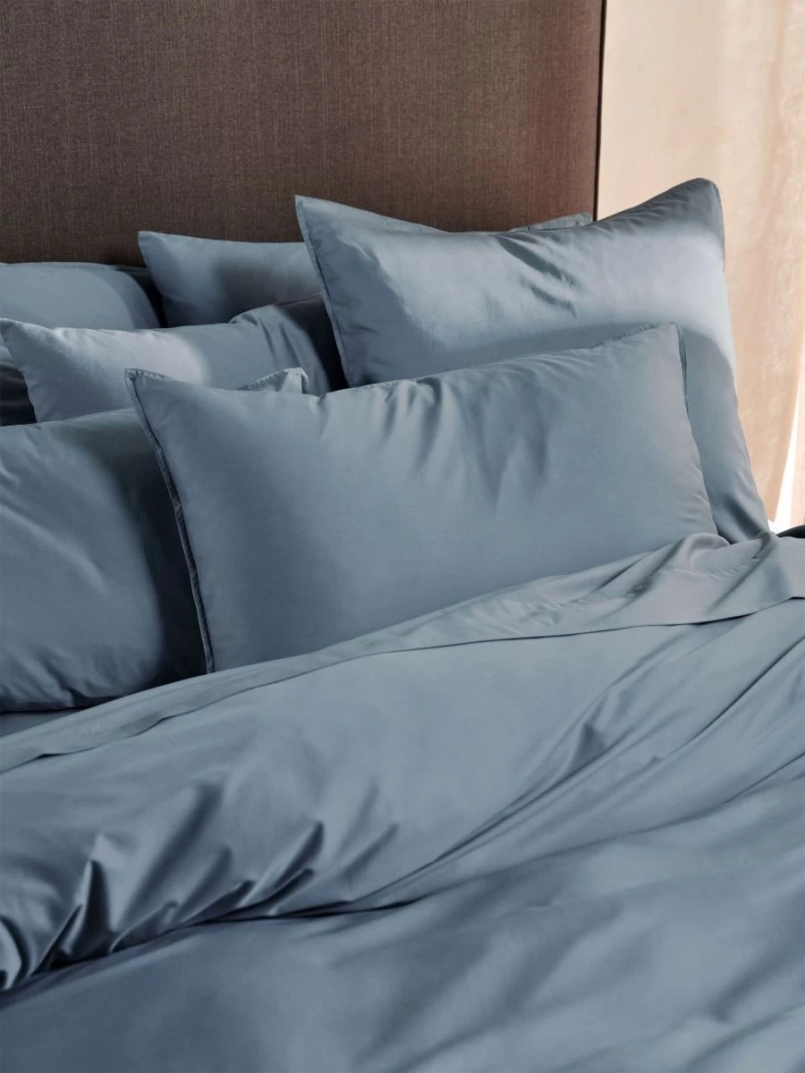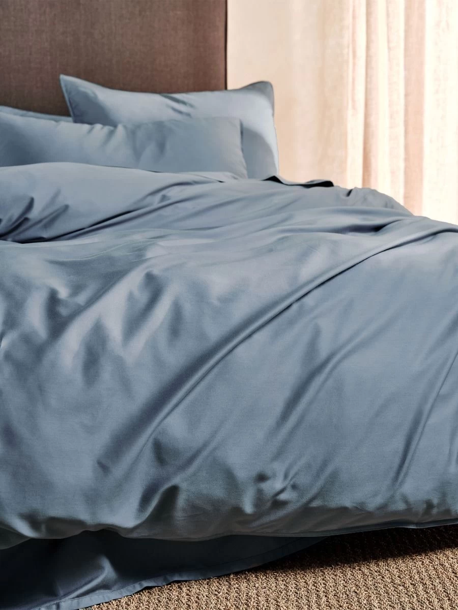 Smoother than silk and made from high-quality, 400 thread bamboo/cotton, this Nara quilt cover set in bluestone enjoys a luxe sateen weave and is trimmed with stitched borders.
