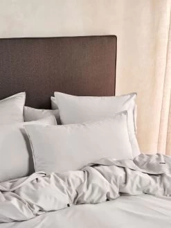 Smoother than silk and made from high-quality, 400 thread bamboo/cotton, this Nara quilt cover set in silver enjoys a luxe sateen weave and is trimmed with stitched borders.