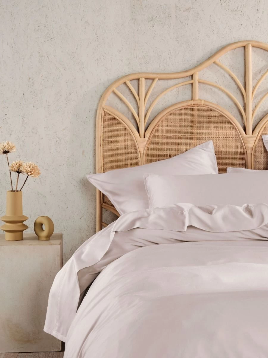 Smoother than silk and made from high-quality, 400 thread bamboo/cotton, this Nara quilt cover set in wisteria enjoys a luxe sateen weave and is trimmed with stitched borders.