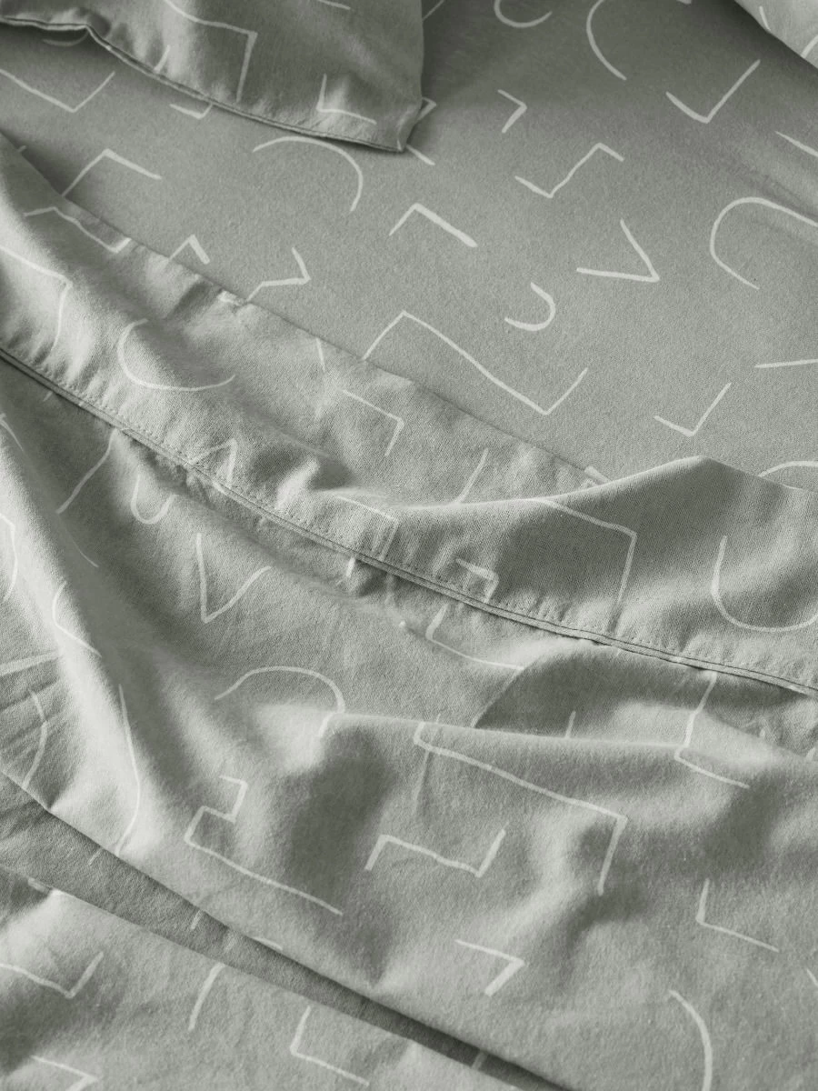 Nica’s playfully abstract design is printed across a lightly brushed cotton ground in contemporary grey, perfect for all bedrooms.