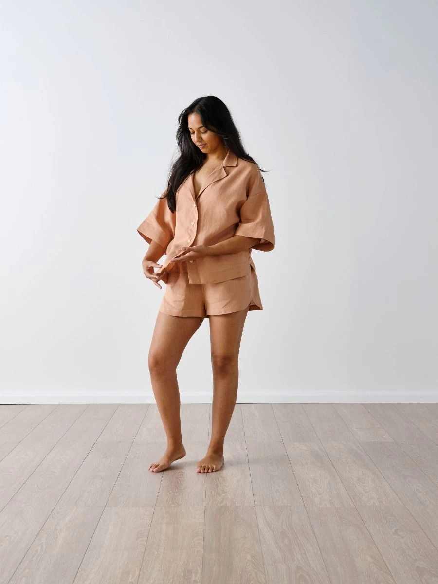 The epitome of effortless, our Nimes shirt in clay enjoys that lived-in style and breathable feel that can only be achieved with pure linen.