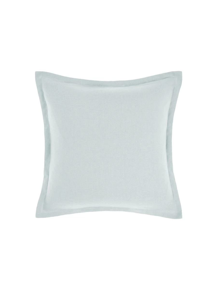 This cushion in sky is linen on both sides and is trimmed with elegant tailored edges.