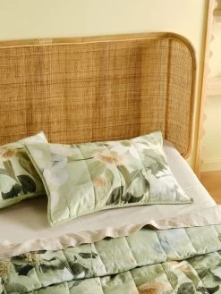 This quilted cotton sateen bed cover enjoys an 80 GSM polyester fill, and looks sublime styled with its coordinating pillow sham set as well as textured accessories for an elevated aesthetic.