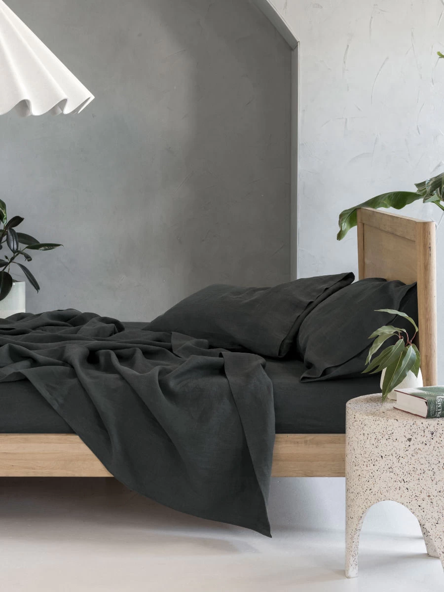 With its vintage look and drape, our Nimes sheet set in magnet is suitable all-year-round. Pre-shrunk and pre-washed, it’s soft-to-touch yet more durable than cotton, laundering well, softening further over time and requiring little to no ironing.