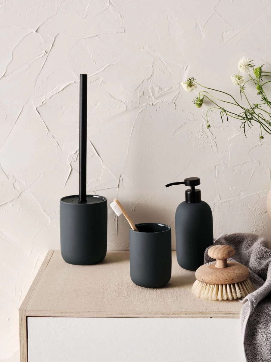 This super-modern bathroom collection, which is made from quality ceramic, will suit any space with its polished high-shine metal top that contrasts with a delightfully smooth, matte finish in charcoal.