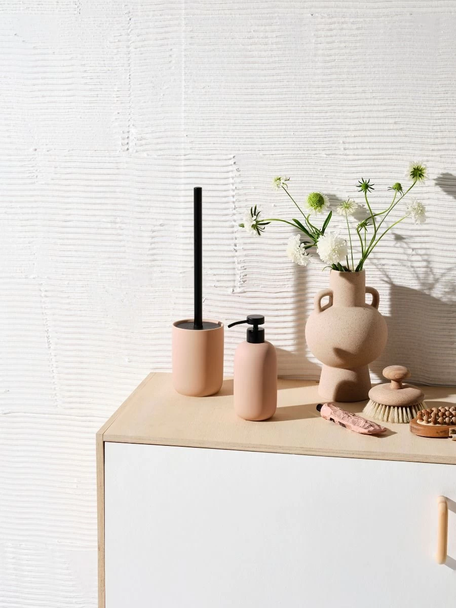 This super-modern bathroom collection, which is made from quality ceramic, will suit any space with its polished high-shine metal top that contrasts with a delightfully smooth, matte finish in clay.