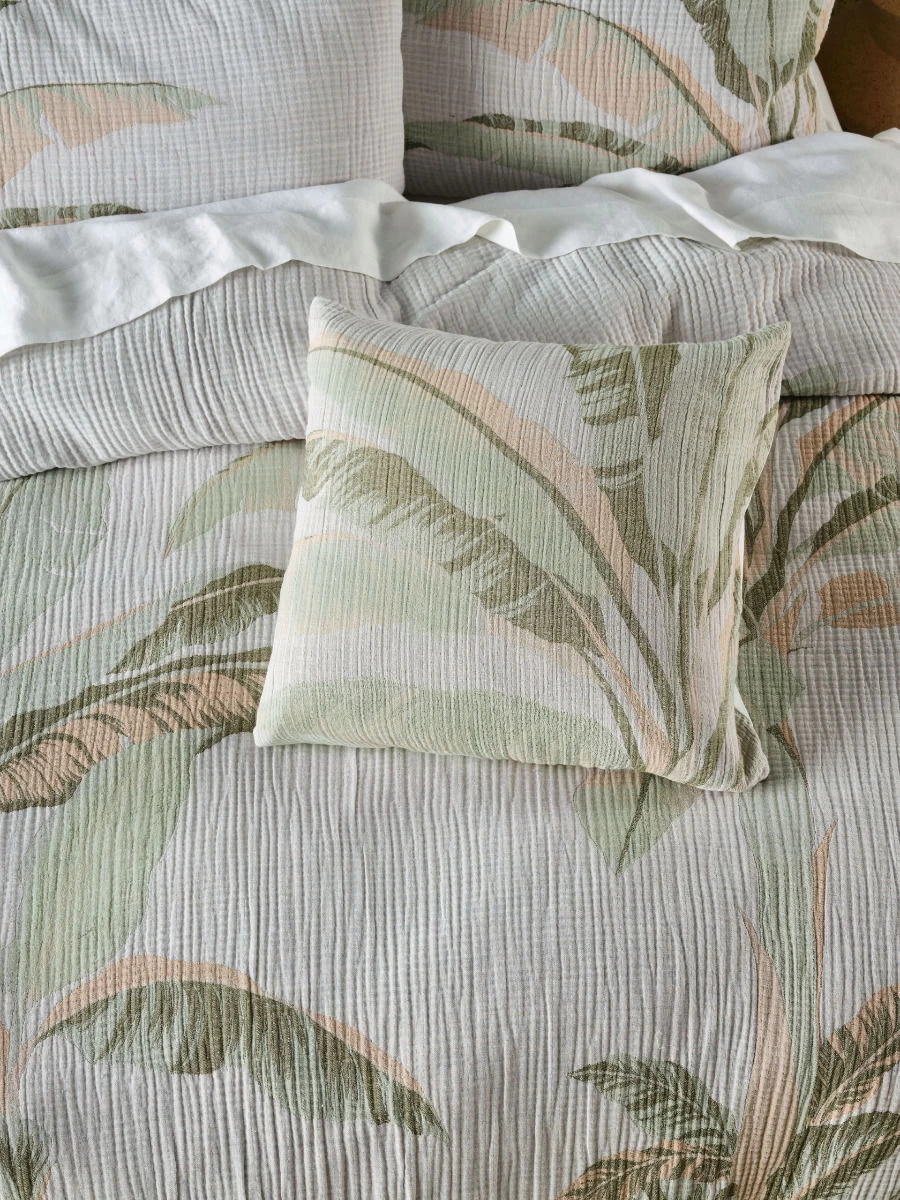 An idyllic scenery of woven cotton matelassé banana palms, this jacquard cushion will effortlessly bring a classic summer vibe indoors.