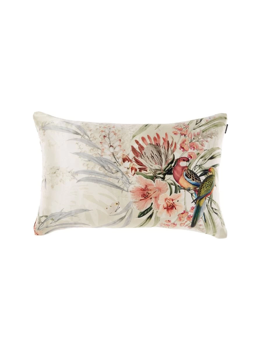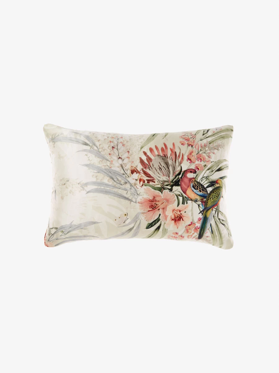 This design is reminiscent of vintage Australiana, depicted in a Daintree paradise, brimming with Rosellas, butterflies and softly swaying native wattle and proteas, all sitting amongst an array of tropical ferns and hibiscus.