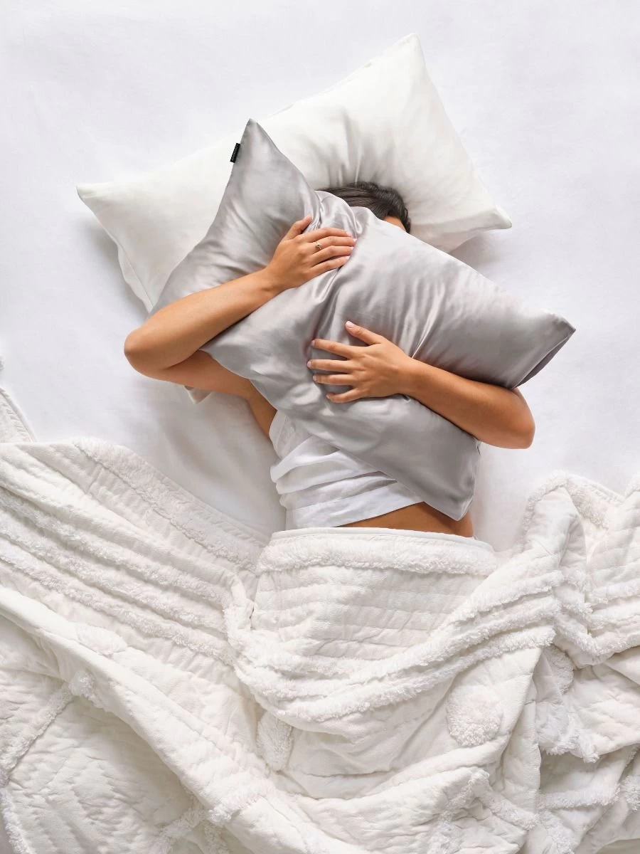 Longing for a wholesome night’s sleep complete with instant beauty benefits? Allow yourself to indulge in the most luxe of slumbers with our all-natural, pure silk pillowcase in silver.