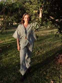Laundering beautifully, this wide-sleeved and cropped on-trend shirt is perfect for everyday wear, sleepwear or an all-day lounge-around.