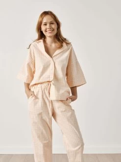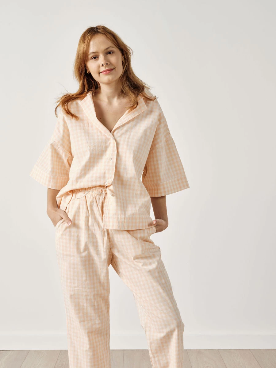 Destined to be a year-round favourite, this peach gingham shirt is made from a beautifully soft, washed cotton.