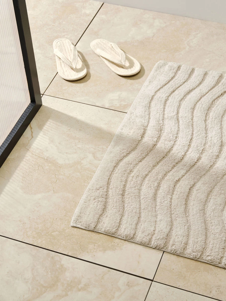 This absorbent, 1800 GSM bath mat is constructed from high and low piles of tufted cotton, giving it a stylish, ultra-soft texture complete with a wave design for a unique aesthetic.