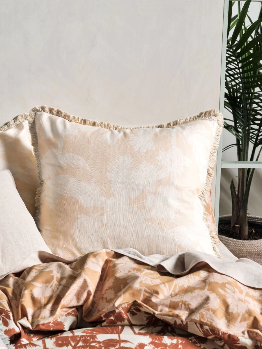 A sweet, stylish micro palm scene, the beauty of this European pillowcase is its print on textured cotton, to complement its coordinating quilt cover set in paprika.