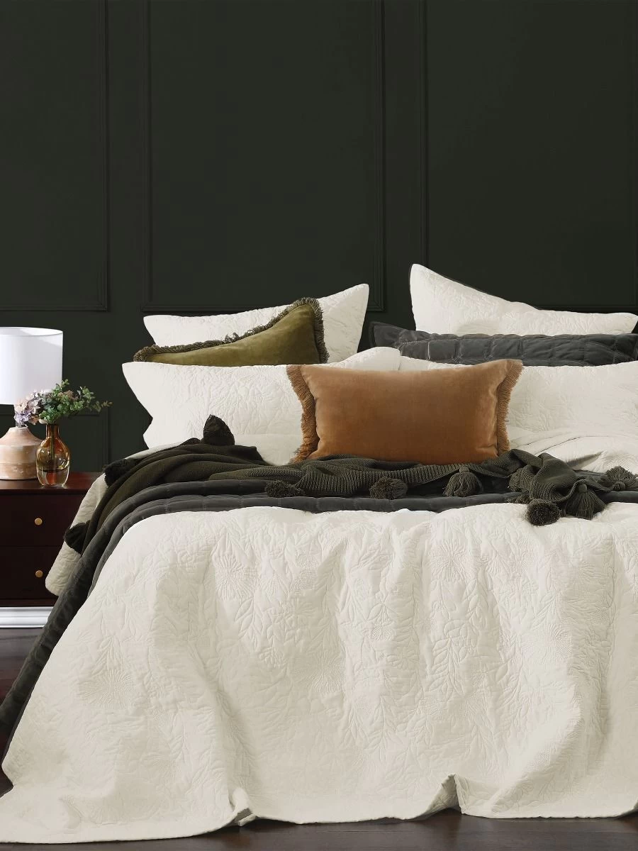 Made from a beautifully soft, quilted cotton, this ivory-hued coverlet set works wonderfully as a stand-alone cover or draped over your favourite bed linen for additional comfort and texture.